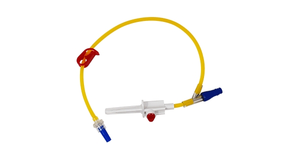 Set secundario de infusión fotoprotegido libre de látex y DEHP. Contiene puerto invertido, libre de aguja y válvula antireflujo.